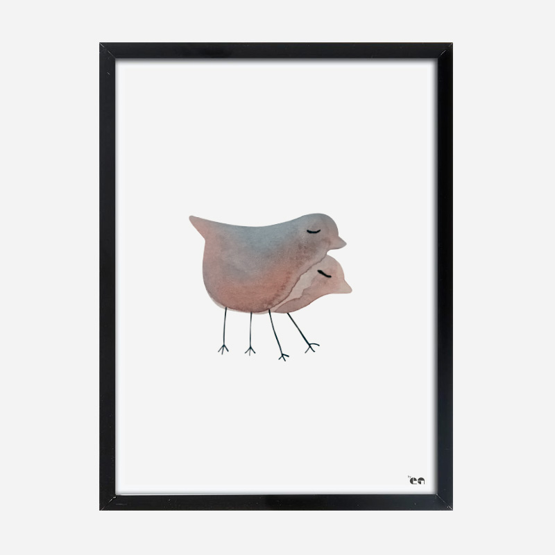 Thise Two Birds are drawn with watercolors and fits perfect for a kids room.