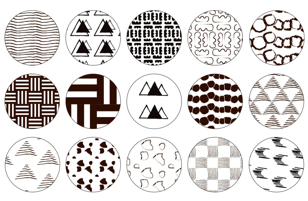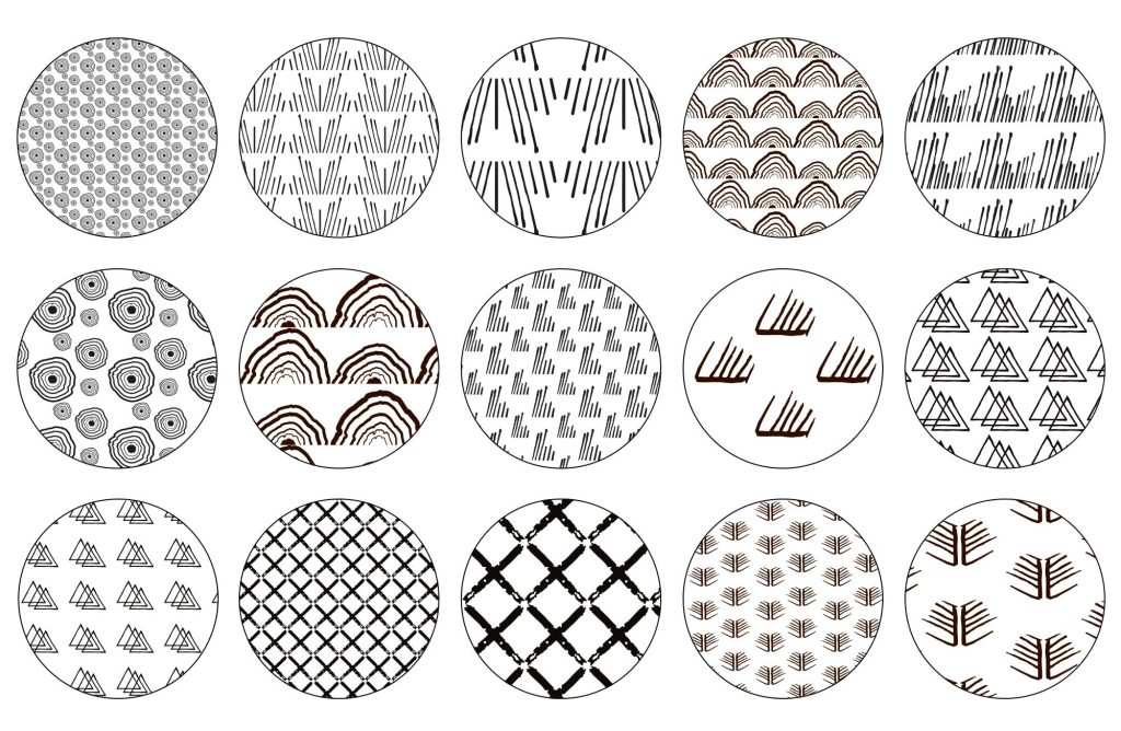 A series of patterns exploring the balance between hand-drawn elements and a clean graphic expression. Through repetition, variation, and simple shapes, the designs create a playful yet structured visual rhythm suited for both print and textile applications.